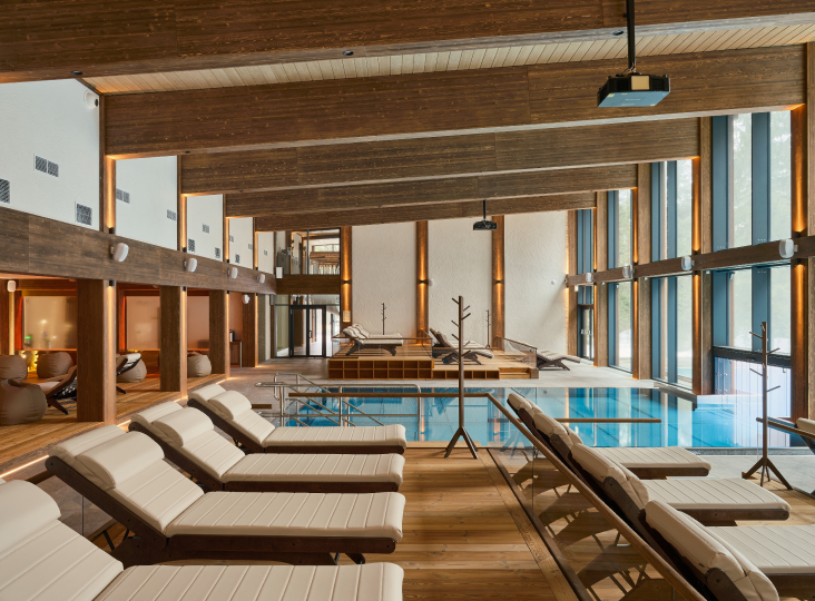 Для еще более глубокого соединения с природой доступна зона снаружи спа-комплекса: уличные чаши выплывных бассейнов, открытый всесезонный подогреваемый бассейн, 2 джакузи, русская парная и летняя терраса с шезлонгами под открытым небом.